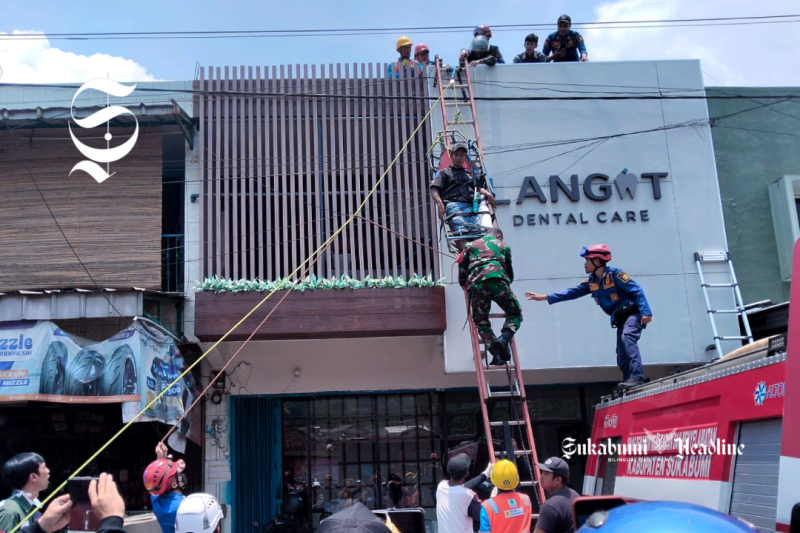 sukabumiheadline.com – Tukang bangunan yang sedang memperbaiki atap salah satu rumah toko, Langit Dental Care, di Kampung Leuwiorok RT 011/005, Desa Sundawenang, Kecamatan Parungkuda, Kabupaten Sukabumi, Jawa Barat, mengalami luka serius akibat tersengat aliran listrik, Selasa (7/10/2025).